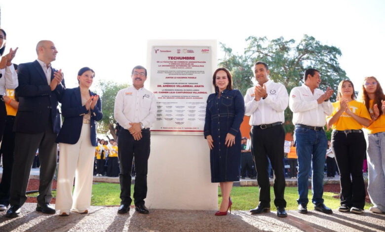 El rector Dámaso Anaya y la alcaldesa Carmen Lilia Canturosas presidieron la entrega de nueva techumbre que beneficia a más de 2 800 estudiantes de la Facultad de Comercio, Administración y Ciencias Sociales Nuevo Laredo.