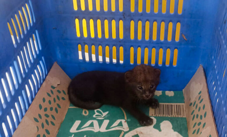 El personal de Profepa acudió al sitio tras recibir el reporte ciudadano y constató que el yaguarundí se encontraba en condiciones de vulnerabilidad, procediendo a su traslado para su rehabilitación.